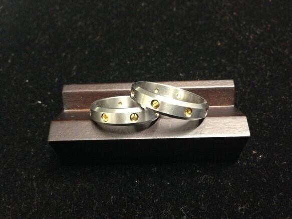 ※ステンレス製リングに使用しているねじは「真ちゅう製」のため、時間がたちますと「くすんで」きます。また、指につけたまま水仕事等をしますと「さび」が「のって」きますが、使い古しの歯ブラシ等でこすってもらえば表面の錆びは落ちますのでお試し下さい。