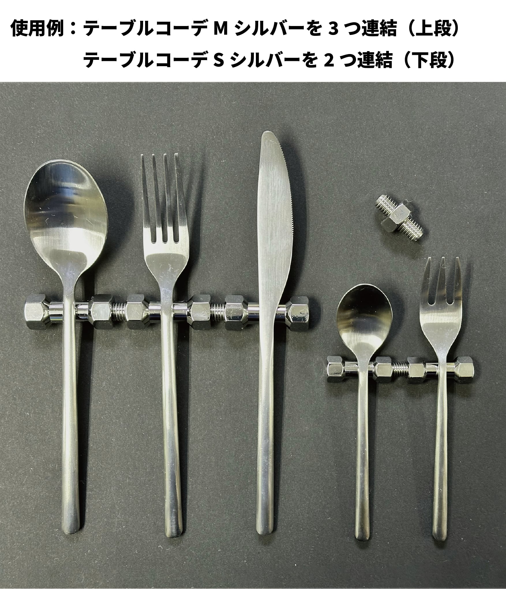 こちらは「テーブルコーデ」のMサイズです。暮らしのシーンを彩る置き台にどうぞ。Mサイズ同士で連結可能です。ゴールドシリーズ×シルバーシリーズでも連結OK。連結用のボルト1本が付属しています。また、NUT BASE「カードスタンド」のS/Mサイズとも連結ができます!
